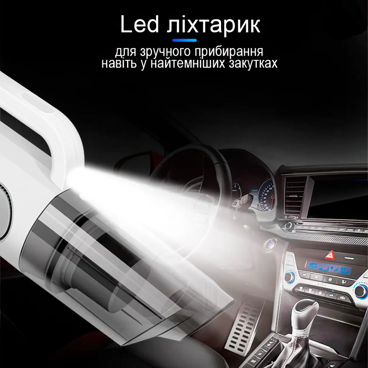 На передній частині автомобільного пилососу розташований ліхтар, що полегшить прибирання в темних закутках. Також він стане у нагоді, якщо ви прибираєте в авто перебуваючи в гаражі або на закритому паркінгу де освітлення є недостатнім.