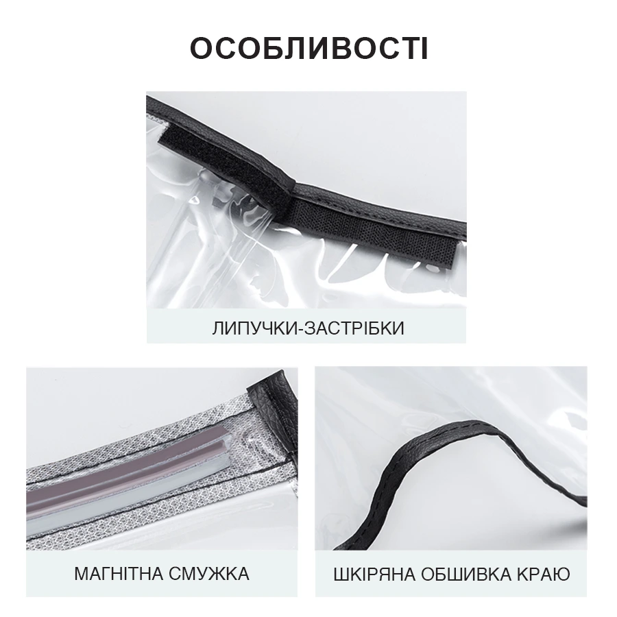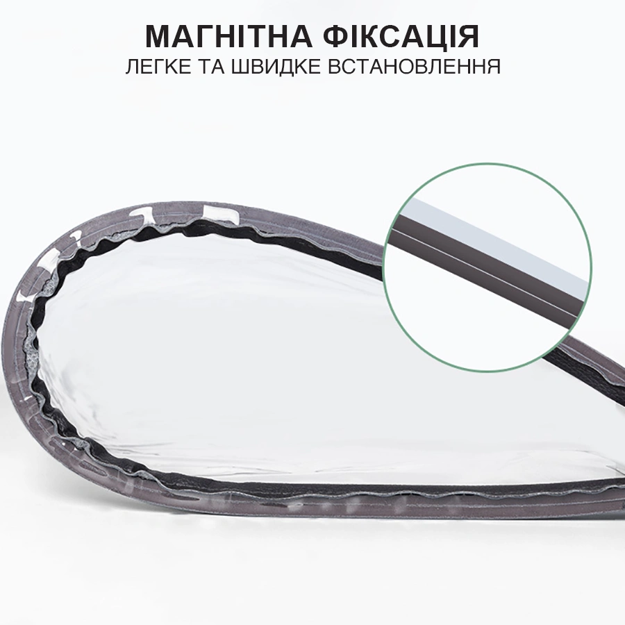 Чохол має магнітну стрічку для фіксації на автомобілі. Завдяки цьому, він щільно прилягає до металевої поверхні та швидко встановлюється.