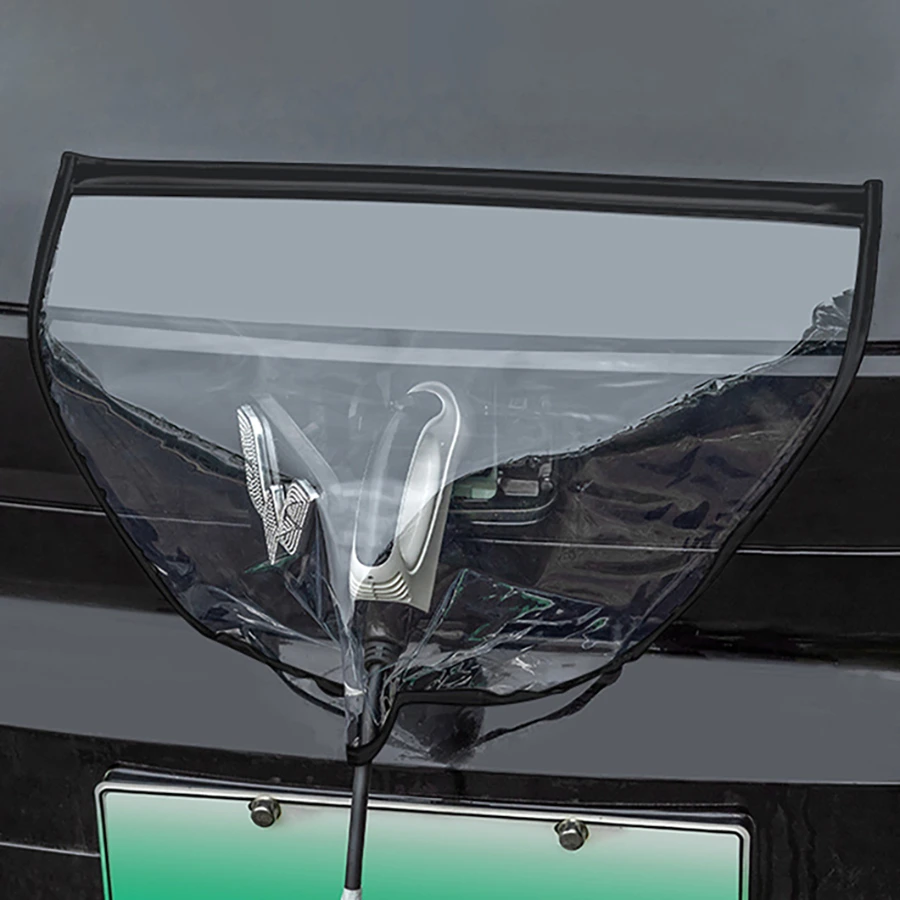 їЗахисний чохол для електромобіля має липучки для кріплення на кабелі зарядного пістолета. Це запобігає зміщенню чохла під час вітру або опадів.