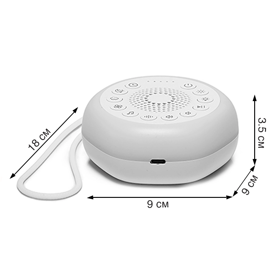 Завдяки компактним розмірам і малій вазі, генератор білого шуму для дітей зручний у транспортуванні. Також пристрій оснащений ремінцем для зручного кріплення до коляски чи ліжечка.