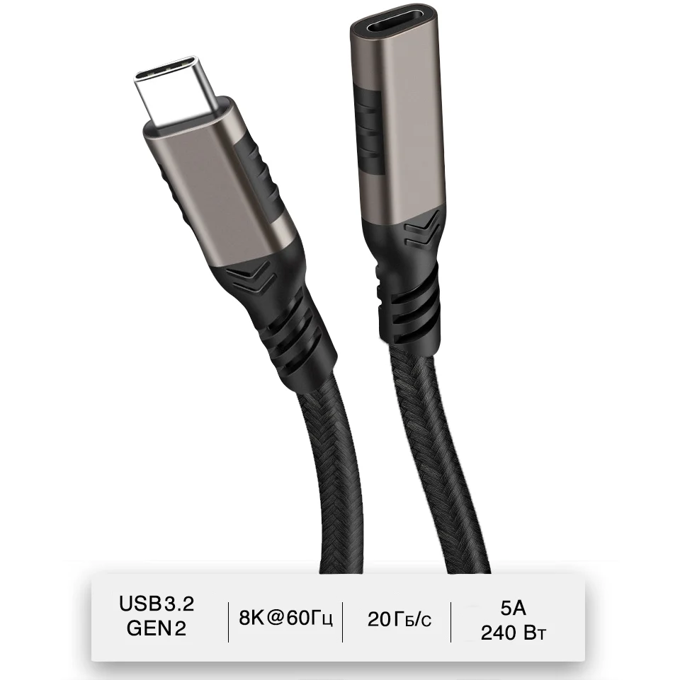 Кабель-подовжувач Type-C male – Type-C female 240Вт USB 3.2 Gen 2 8K 60Гц 20 Гбіт/с з обплетенням
