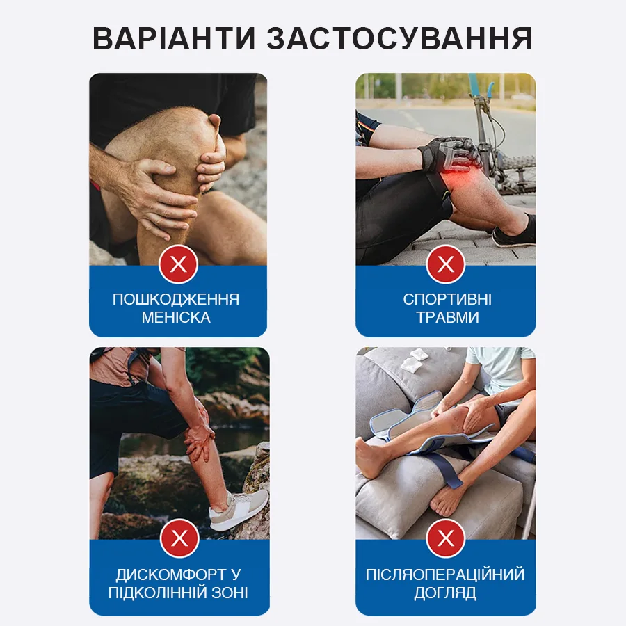 Післяопераційний ,У разі пошкодження меніска ,У разі розтягування ,У разі спортивних травм |