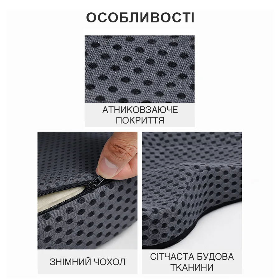 Ортопедична подушка має знімний чохол. Завдяки цьому подушку легко підтримувати в чистоті під час щоденного використання.