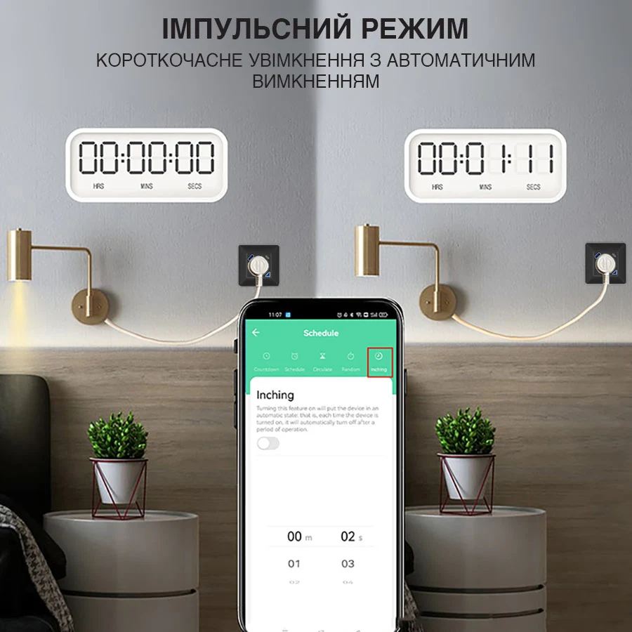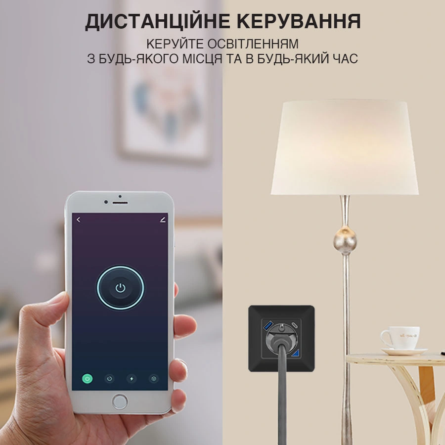 Розумна розетка з Type-C PD 20W оснащена Wi-Fi модулем, що забезпечує віддалене керування через мобільний застосунок. Користувач може вмикати та вимикати живлення, а також контролювати роботу підключених пристроїв з будь-якого місця.