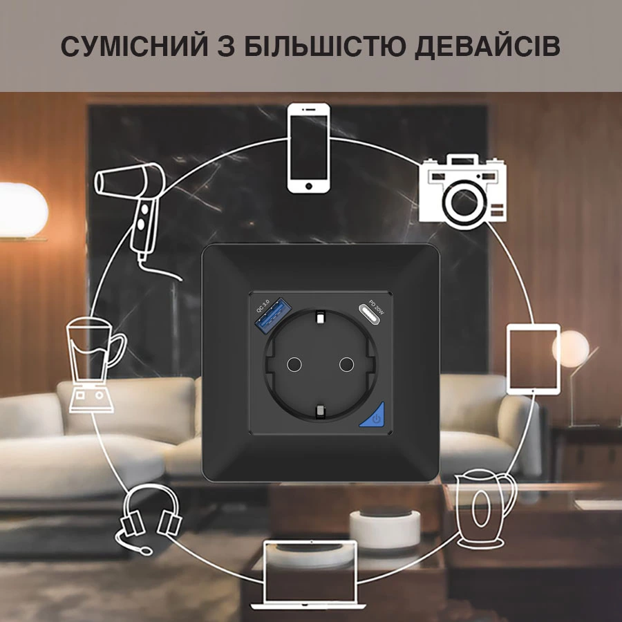 Розумна розетка з Type-C PD 20W USB-A Wi-Fі Bluetooth