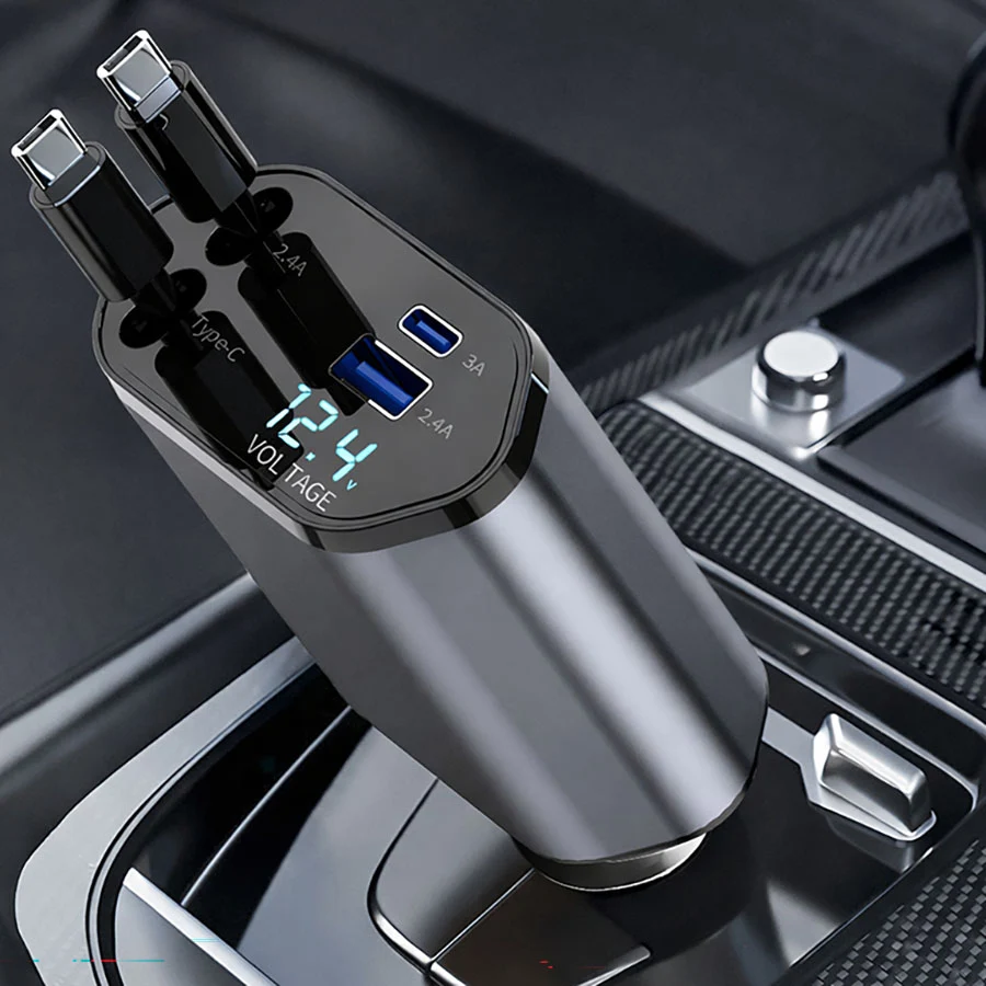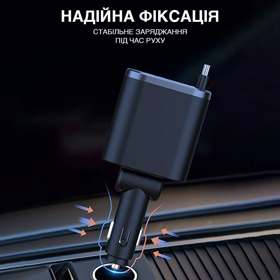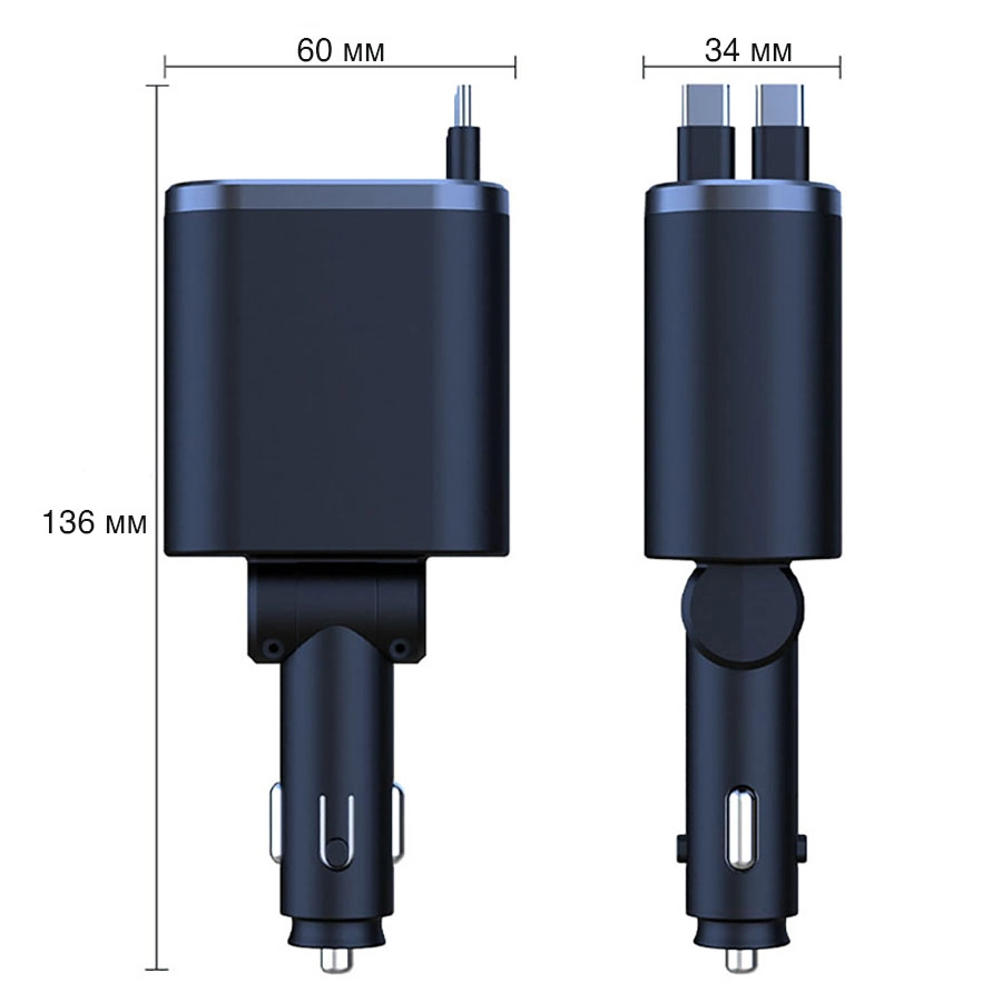 Зарядний пристрій в авто для телефону з висувними кабелями Type-C